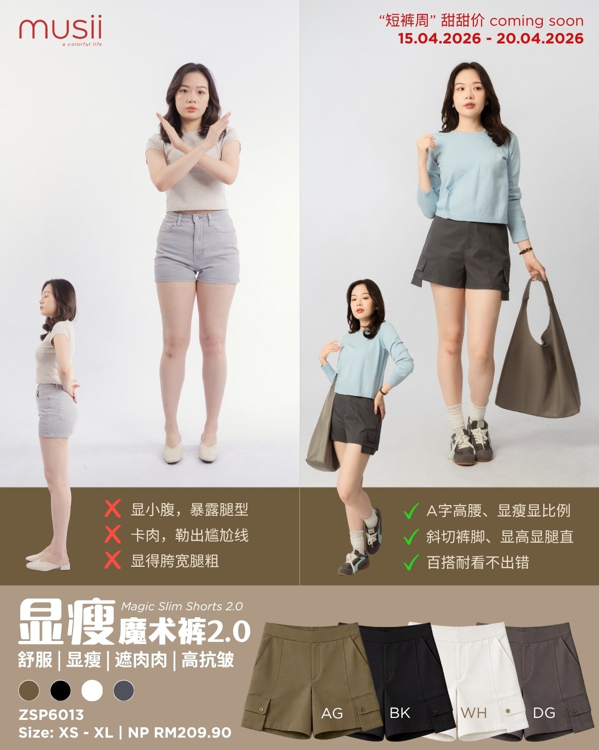 ARMY GREEN - 显瘦魔术裤 Magic Slim Shorts 2.0 Ratings: 0 - 0 votes